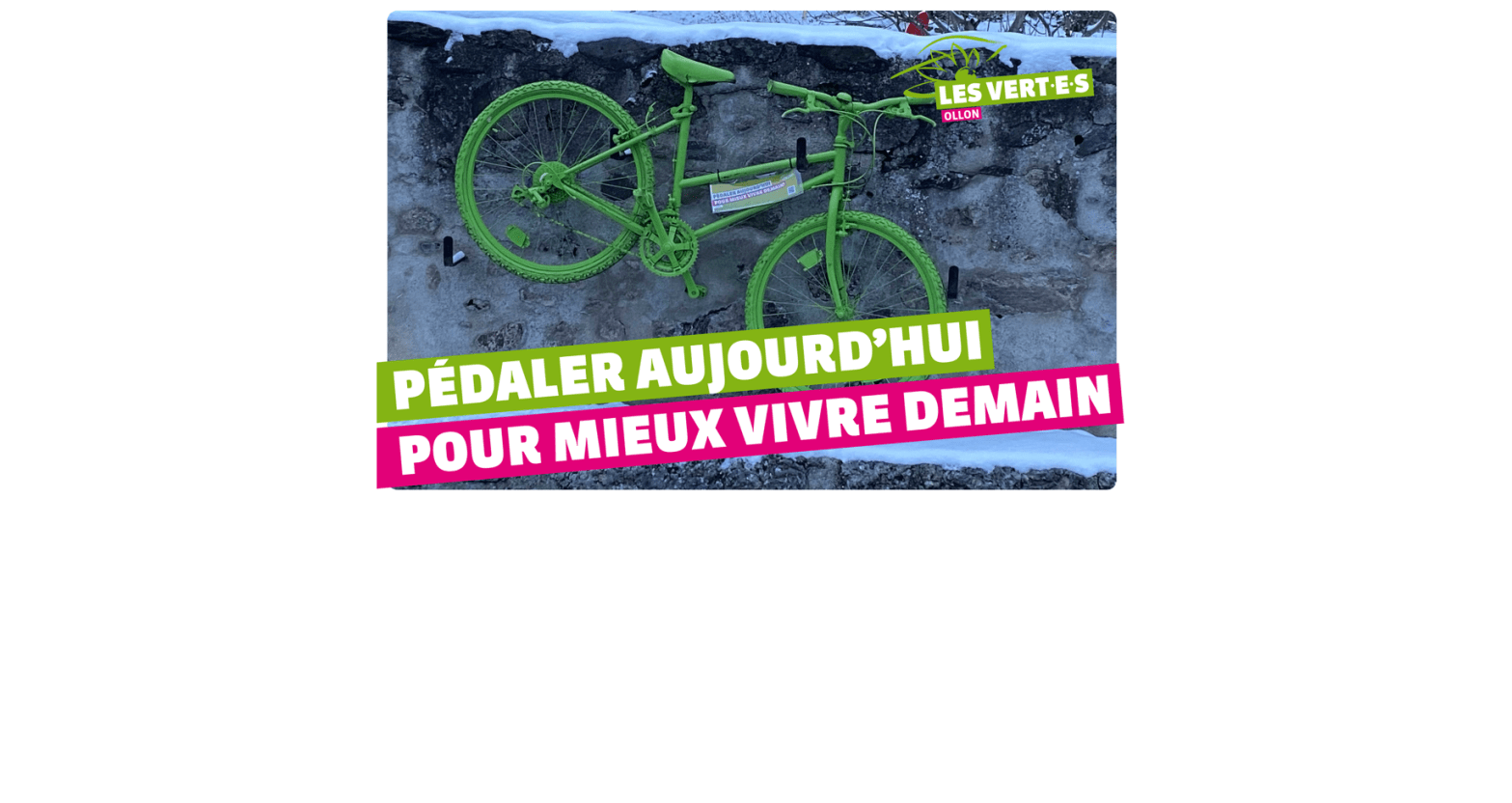 Les Vert·e·s d’Ollon sont prêt·e·s à pédaler dès aujourd’hui pour que nous puissions tous ensemble mieux vivre demain ! Votez la liste no 1 !