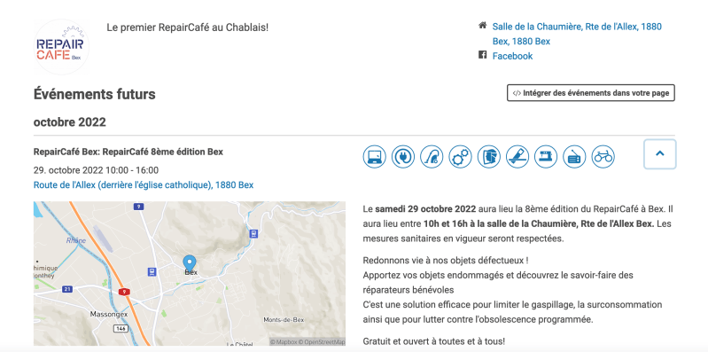 Vous avez des objets à faire réparer? Publié parcatherineflutsch23 octobre 202223 octobre 2022Publié dans2022, A vos agendas !, Agir aujourd'hui pour mieux vivre demain Alors rendez-vous au prochain Repair Café de Bex, le 29 octobre 2022, de 10 heures à 16 heures ! Partager : Cliquez pour partager sur Facebook(ouvre dans une nouvelle fenêtre) Facebook Cliquez pour partager sur WhatsApp(ouvre dans une nouvelle fenêtre) WhatsApp J’aime chargement… Similaire