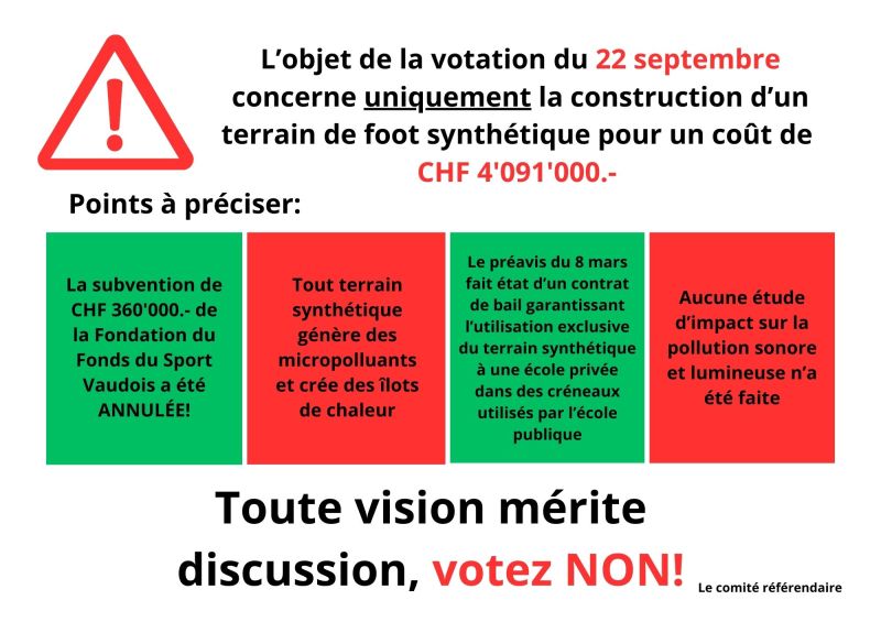 La population s’est déplacée en nombre, la participation s’élevant à presque 57%. Le sujet a préoccupé une majorité de la population et a donné lieu à nombreux échanges animés sur les réseaux sociaux, dans la rue et dans les familles. Les Vert·e·s souhaitent que la Municipalité puisse maintenant réfléchir de façon constructive à la suite à donner à ce débat. Nous espérons qu’elle saura dans le futur privilégier des projets rassembleurs et à l’écoute de la population.