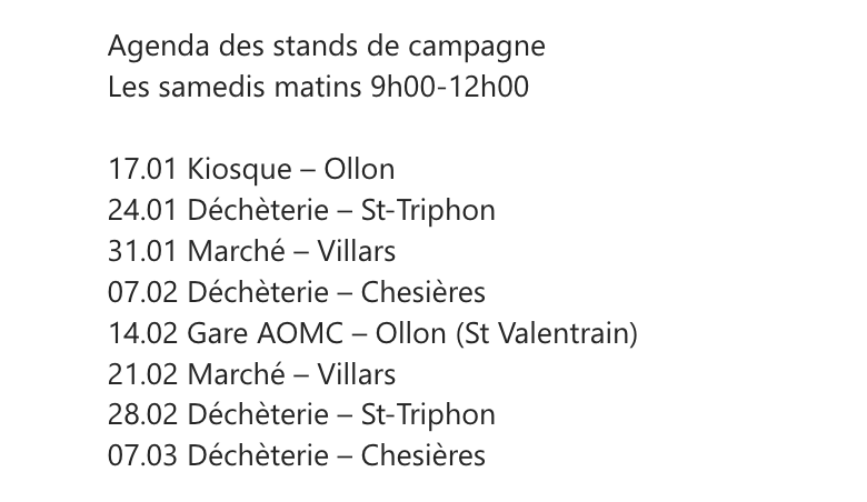 Voici où nous rencontrer ces prochaines semaines, en compagnie du Parti socialiste & Indépendant·e·s de gauche d’Ollon :