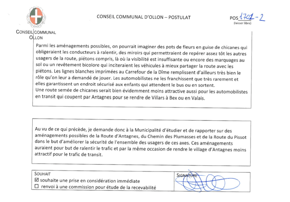 Postulat «Pour des routes sûres pour tous à Antagnes !» Déposé par Catherine Flütsch le 26 juin 2017. En traitement par la Municipalité. TEXTE RÉPONSE DE LA MUNICIPALITÉ postulat-flutsch-catherine-routes-sures-pour-tous-a-antagnesTélécharger reponse-postulat-catherine-flutsch-pour-des-routes-sures-pour-tous-a-antagnesTélécharger Partager : Cliquez pour partager sur Facebook(ouvre dans une nouvelle fenêtre) Facebook Cliquez pour partager sur WhatsApp(ouvre dans une nouvelle fenêtre) WhatsApp J’aime chargement…